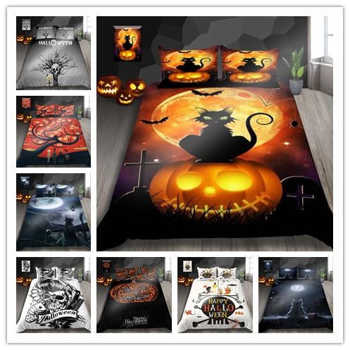Halloween Sheet Set: Halloween bedding set bat moon design teens bedding festival duvet cover black and orange ambesonne horror fitted sheet & pillow sham set, splashes of blood grunge style bloodstain.